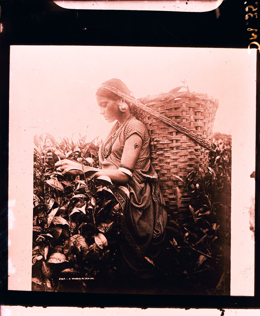 A woman plucking, Darjeeling, West Bengal. Sir George Watt’s Indian images, 1880. Historical glass plate slide collection, Royal Botanic Garden, Edinburgh.