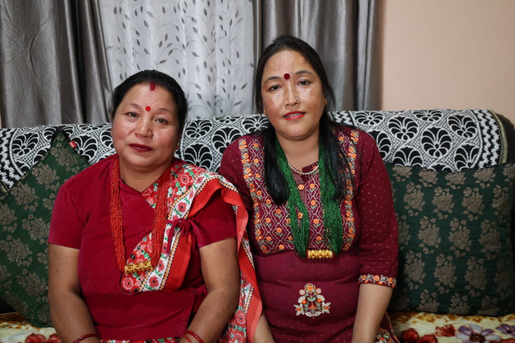 Nurturing care frameworks: Meena Tamang (right) is the Vice President of the Makaibari Tea Estates Fair Trade Committee. Trained as a nurse at the Kurseong Hospital for three months, she went on to join Makaibari as a health worker in 2016. Meena is a key figure in the health consultations conducted within the communities and is responsible for the necessary medications and health precautions for the individuals. Photographed by the during her research visit in 2025.