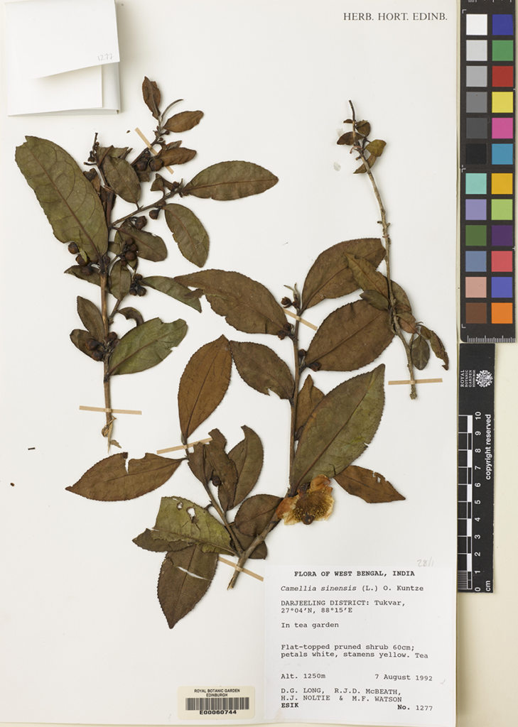 Camellia sinensis (L.) Kuntze. Filing region: Bhutan, Sikkim & Darjeeling. Country/Territory: India, Collection of Royal Botanic Garden Edinburgh.