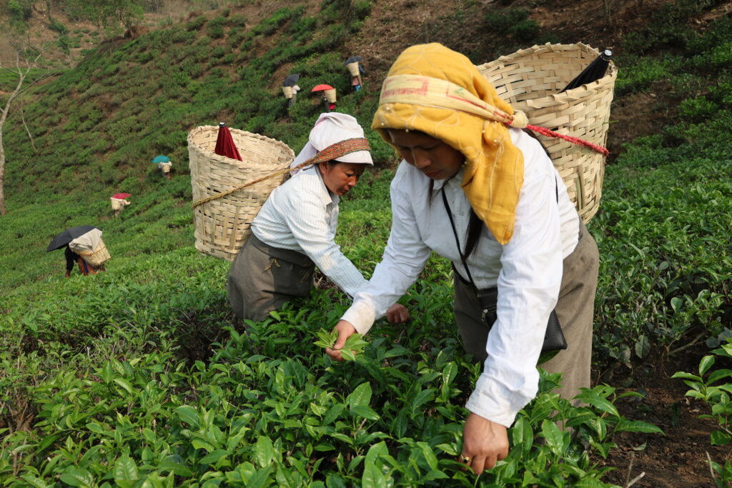 My research aims to uncover the experiences of Gorkha women in tea plantations through the lens of ‘conflict’ or ‘disruption’. The intimate relationship of female labourers with tea plantations conveys their complex feelings of justice and injustice, service, and care. Thousands of women from small villages and labour quarters surrounding the tea plantations set out every morning to pick tender tea shoots, producing only a pound of tea per thousand workers. Tea leaf plucking is a labour-intensive process that necessitates skill, experience, and patience. High-quality tea requires harvesting the topmost leaves and buds, using only the most delicate fingers to ensure the leaves are not bruised or damaged during the process. This process is essential because it enables the plants to promote new shoots and optimize harvest results.